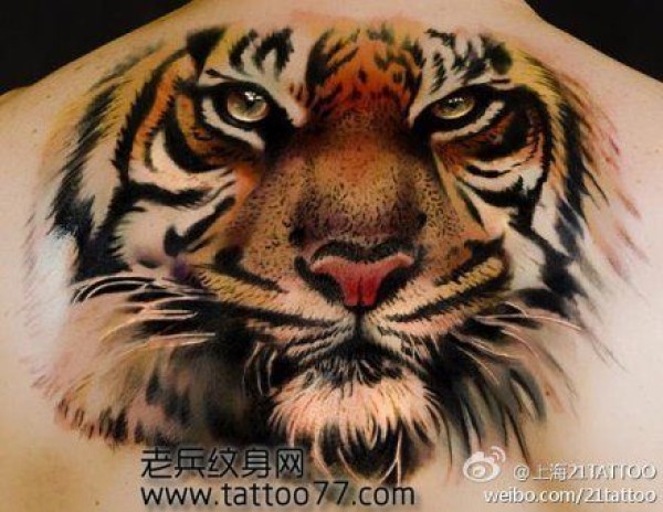 霸气的背部虎头纹身图案