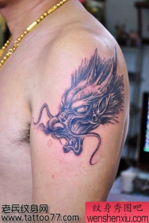 龙纹身手稿_一组老传统黑灰龙手稿纹身图案