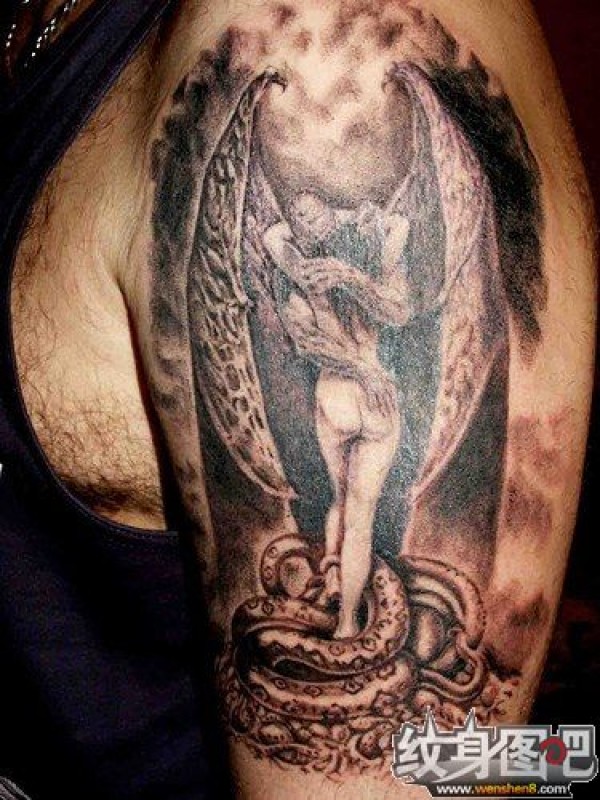 女生肩花纹身_15张女性双肩对称的肩花纹身图案作品图片