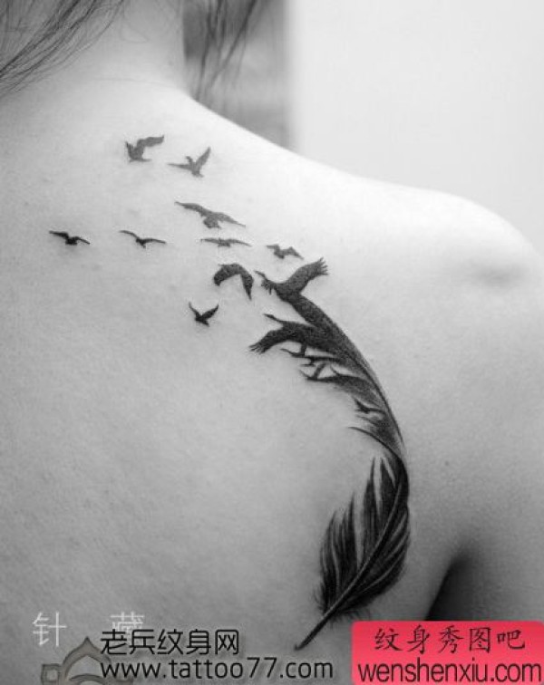 时尚的背部羽毛大雁纹身图案