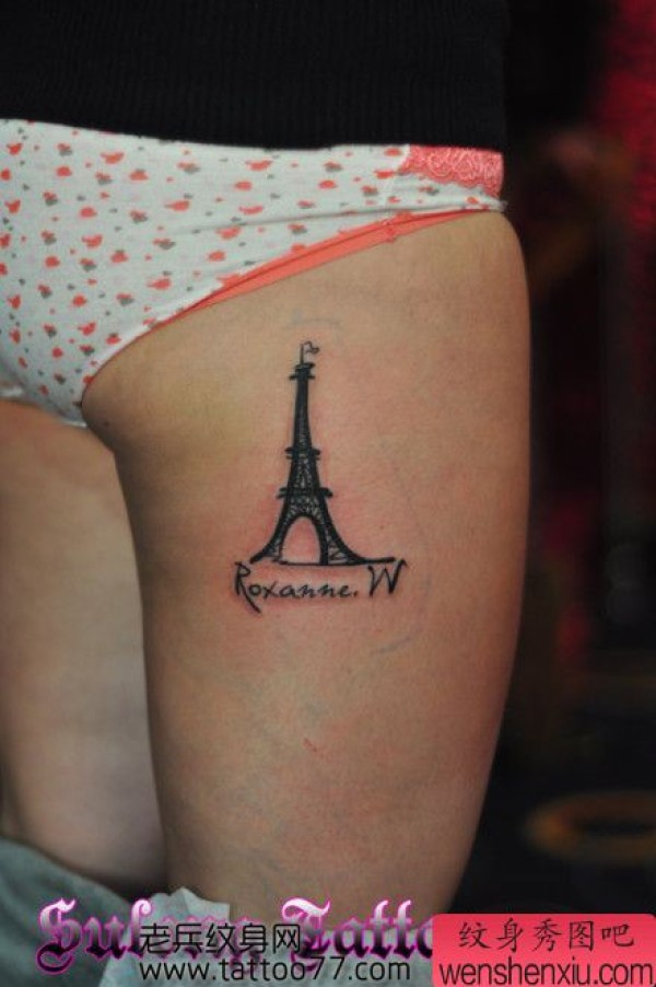 美女腿部巴黎铁塔纹身图案