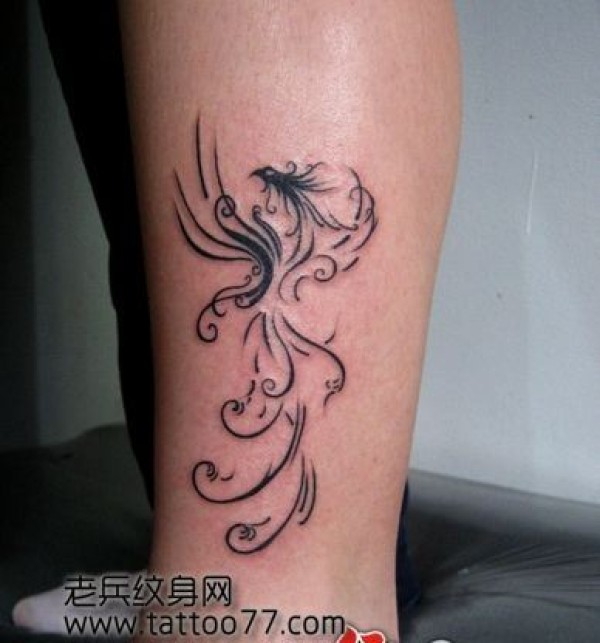 腿部经典唯美的图腾凤凰纹身图案