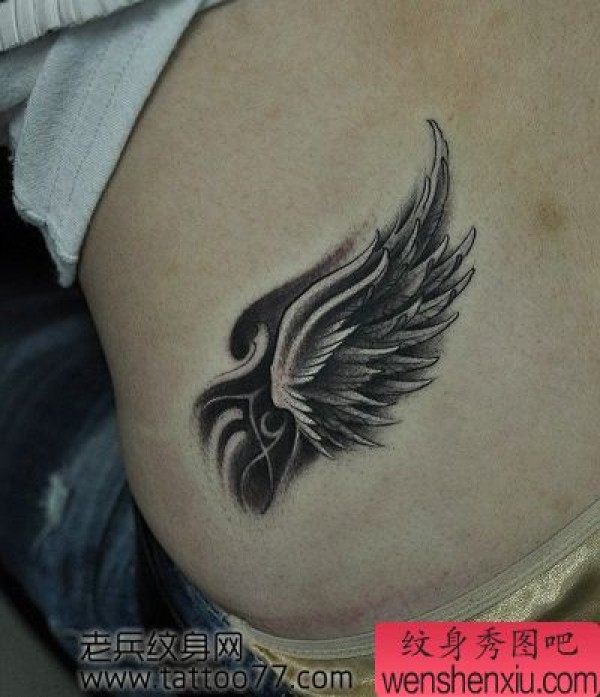 精美的腰部翅膀纹身图案