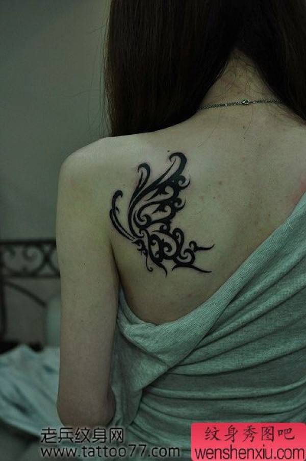 美女肩部精美好看的图腾蝴蝶纹身图案