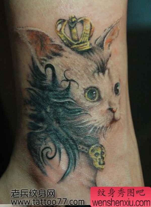 腿部可爱的猫咪纹身图案