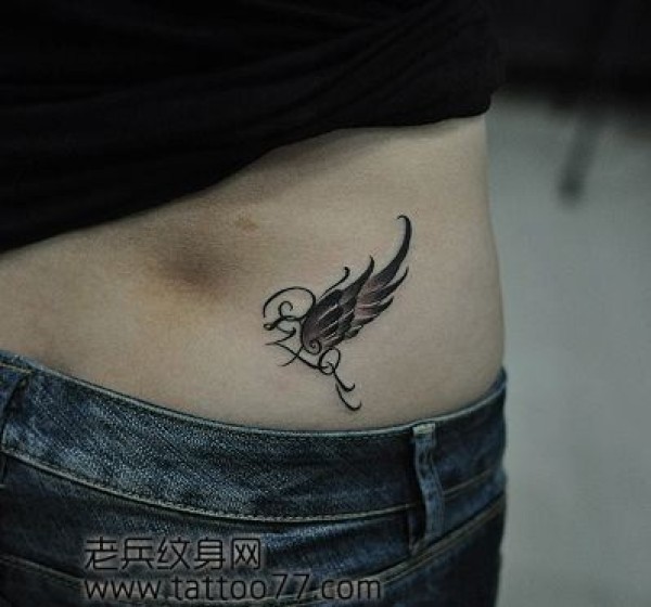 腰部精美时尚的翅膀纹身图案