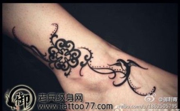 脚部精美时尚的图腾四叶草燕子纹身图案