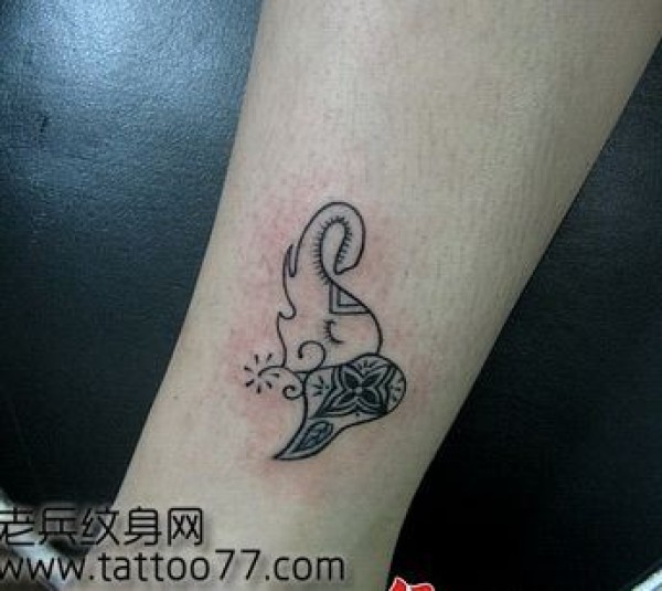 美女腿部可爱经典的大象纹身图案