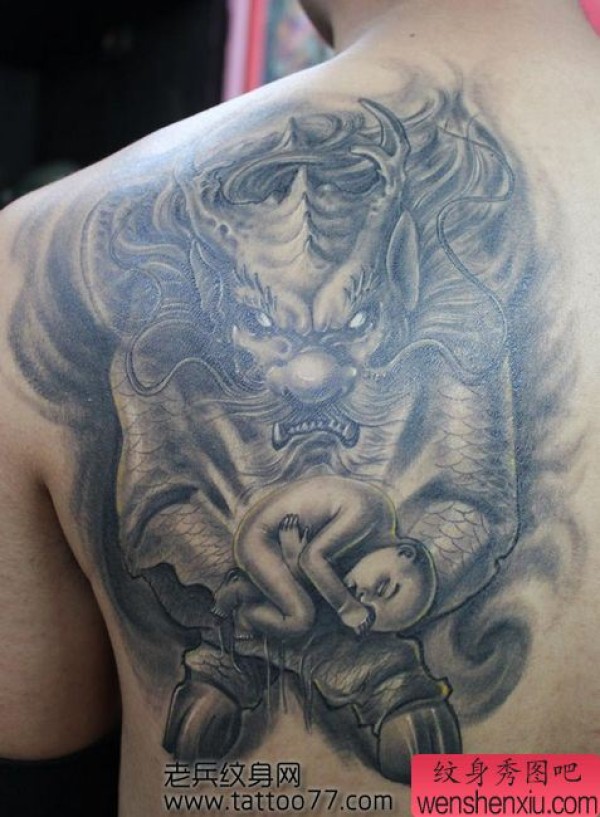 一张帅气的背部麒麟送子纹身图案