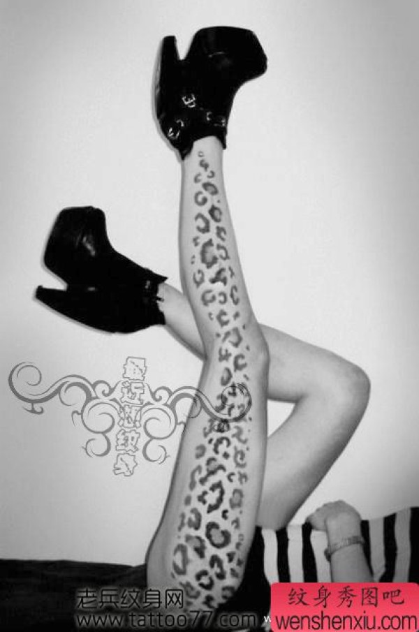 美女腿部时尚另类的豹纹纹身图案