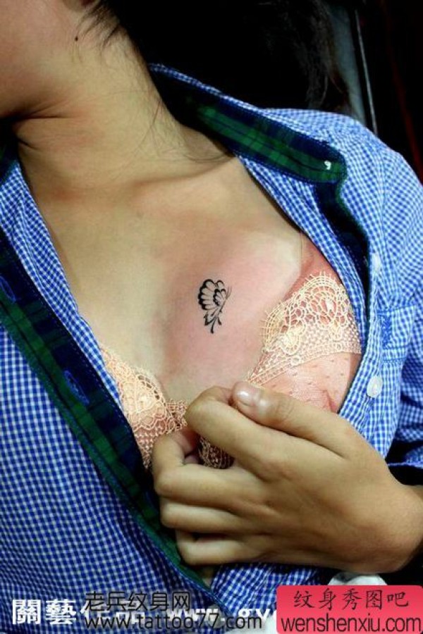 美女胸部时尚精美的图腾蝴蝶纹身图案