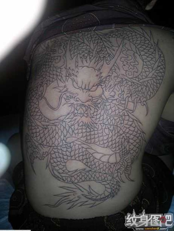 龙纹身手稿_一组老传统黑灰龙手稿纹身图案