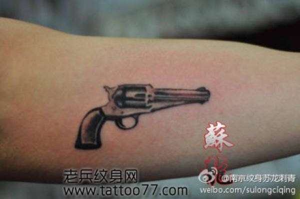 手臂时尚经典的小手枪纹身图案