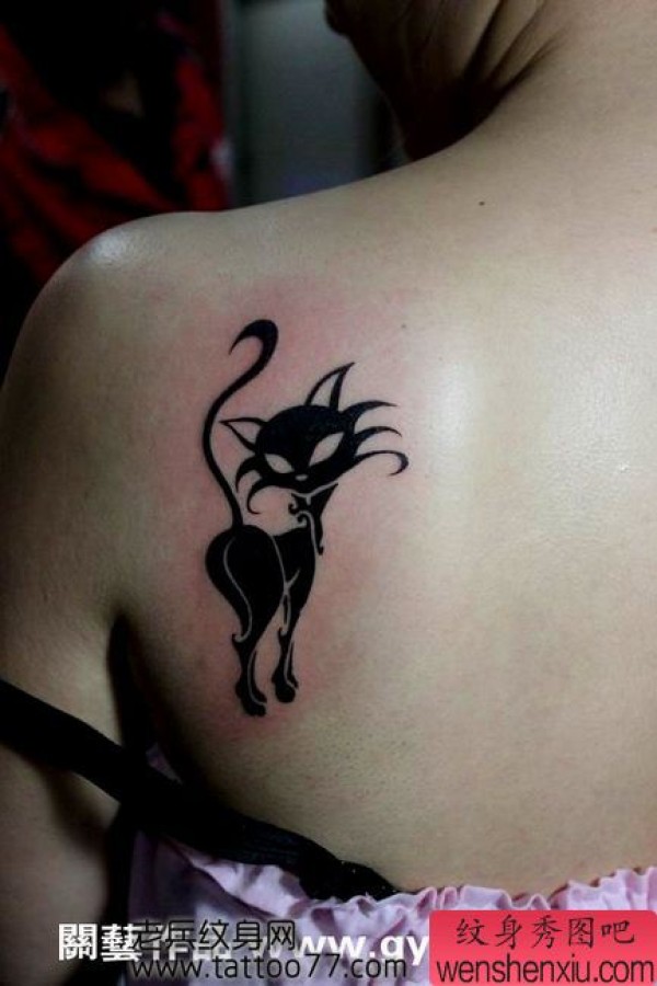 美女肩部时尚可爱的图腾猫咪纹身图案