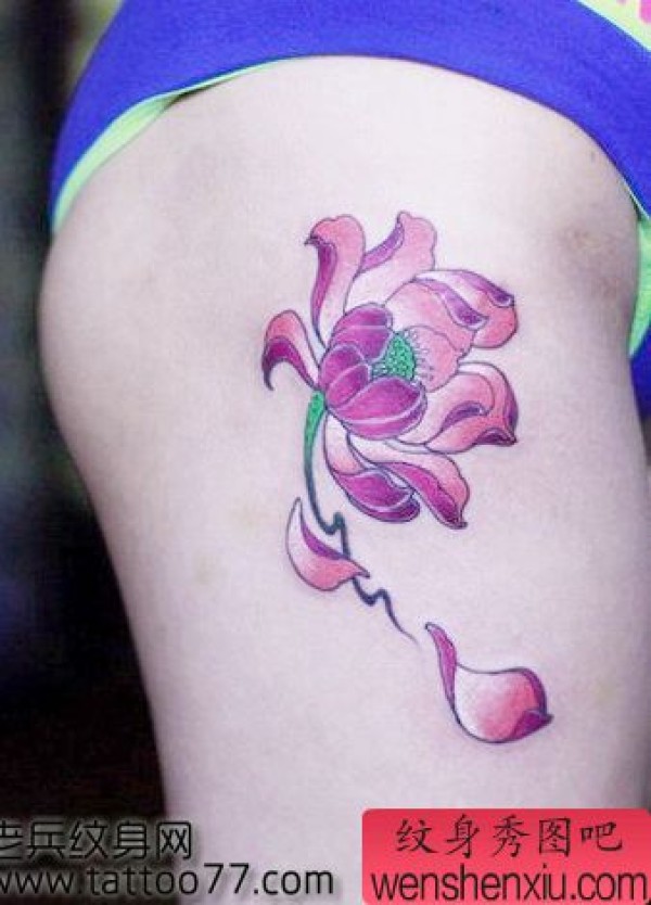 唯美性感的腿部莲花纹身图案