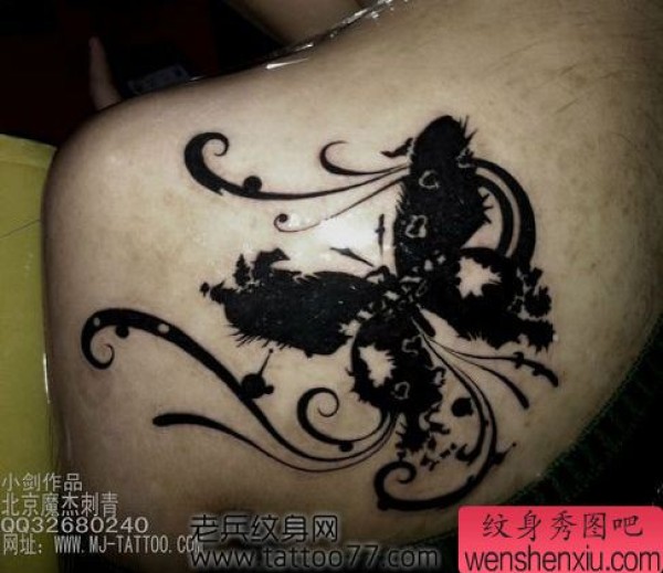 美女肩部精美时尚的图腾蝴蝶纹身图案