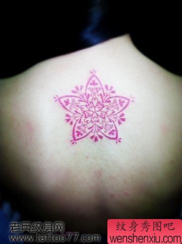一张美女背部粉色图腾纹身图案