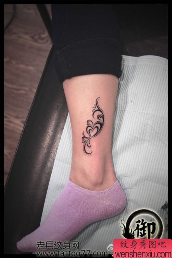 美女腿部图腾爱心藤蔓纹身图案