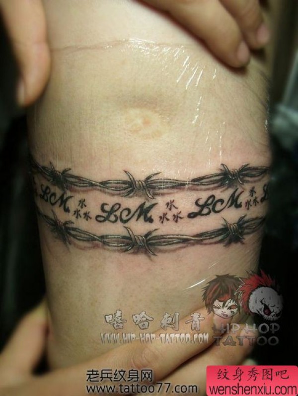 手臂荆条字母纹身图案