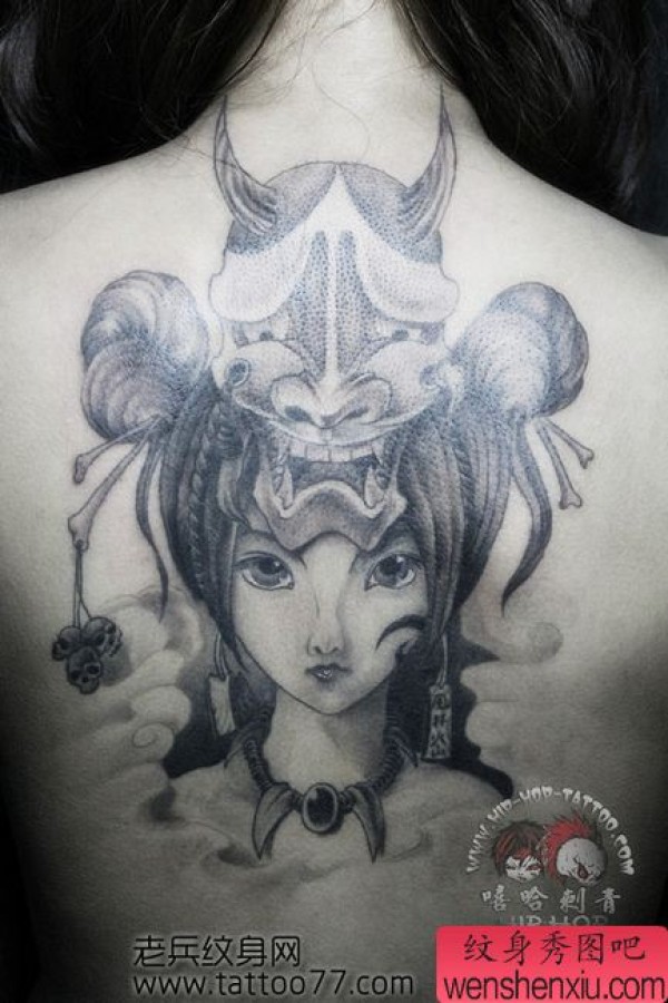 能面万媚纹身手稿_52张日式能剧面具纹身手稿图案素材欣赏