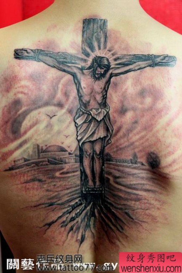 经典的背部耶稣十字架纹身图案