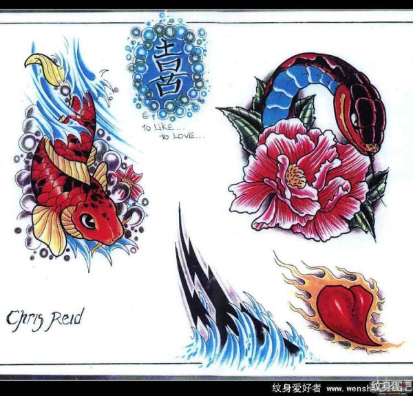 双鱼座纹身手稿_45张十二星座之双鱼手稿纹身图案