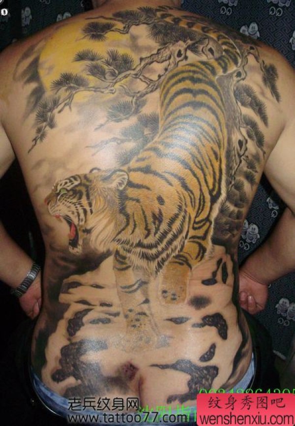 男士喜欢的满背下山虎纹身图案