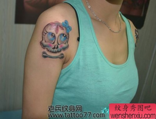 一张美女手臂可爱的骷髅纹身图案