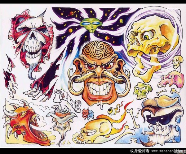 能面万媚纹身手稿_52张日式能剧面具纹身手稿图案素材欣赏