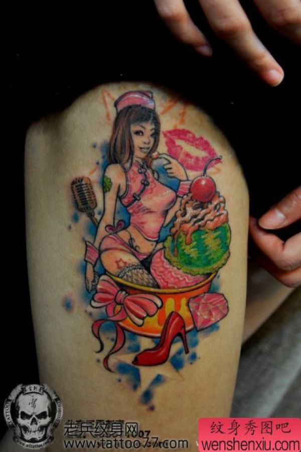 另类性感的美女冰激凌纹身图案