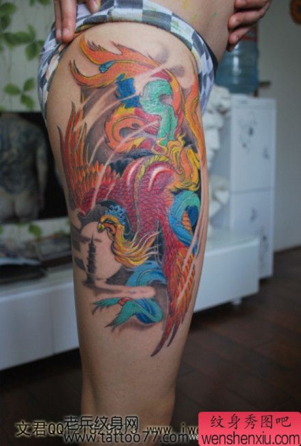 美女腿部华丽的凤凰纹身图案