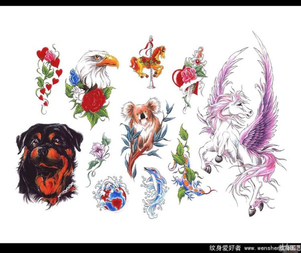 一组18张漂亮的欧美newschool动物纹身手稿图案