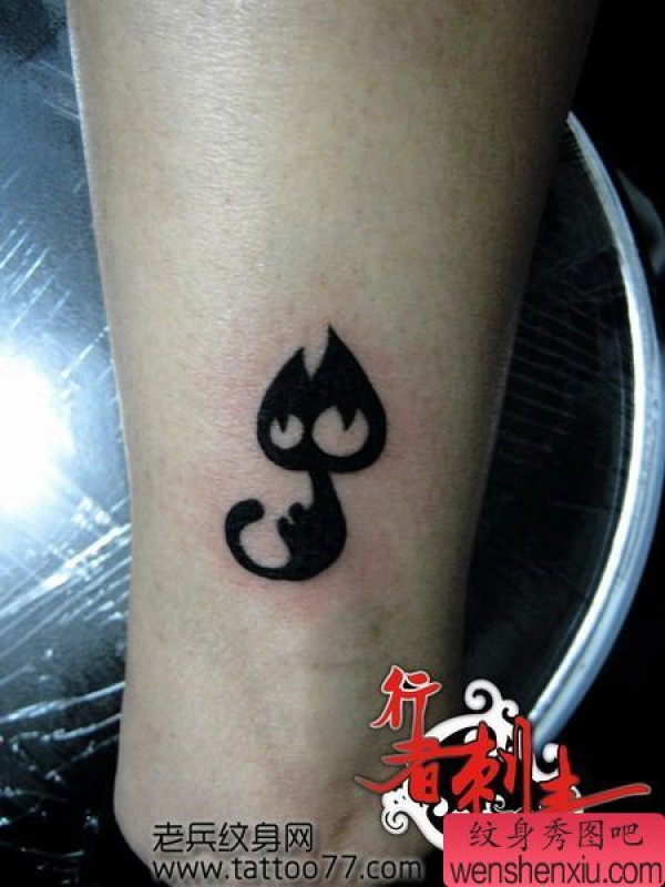 美女腿部时尚可爱的图腾猫咪纹身图案