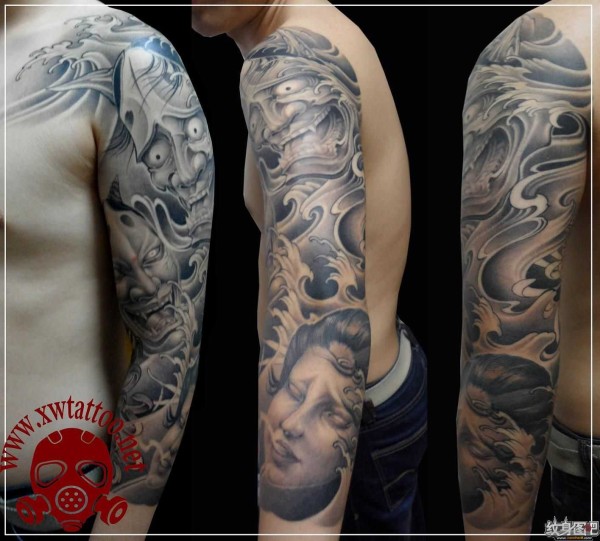 能面万媚纹身手稿_52张日式能剧面具纹身手稿图案素材欣赏