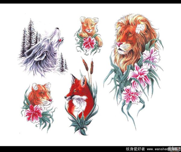 一组18张漂亮的欧美newschool动物纹身手稿图案