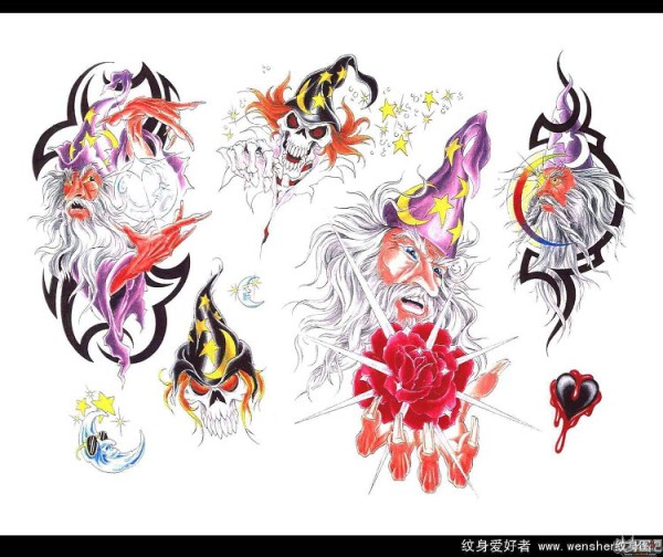 能面万媚纹身手稿_52张日式能剧面具纹身手稿图案素材欣赏