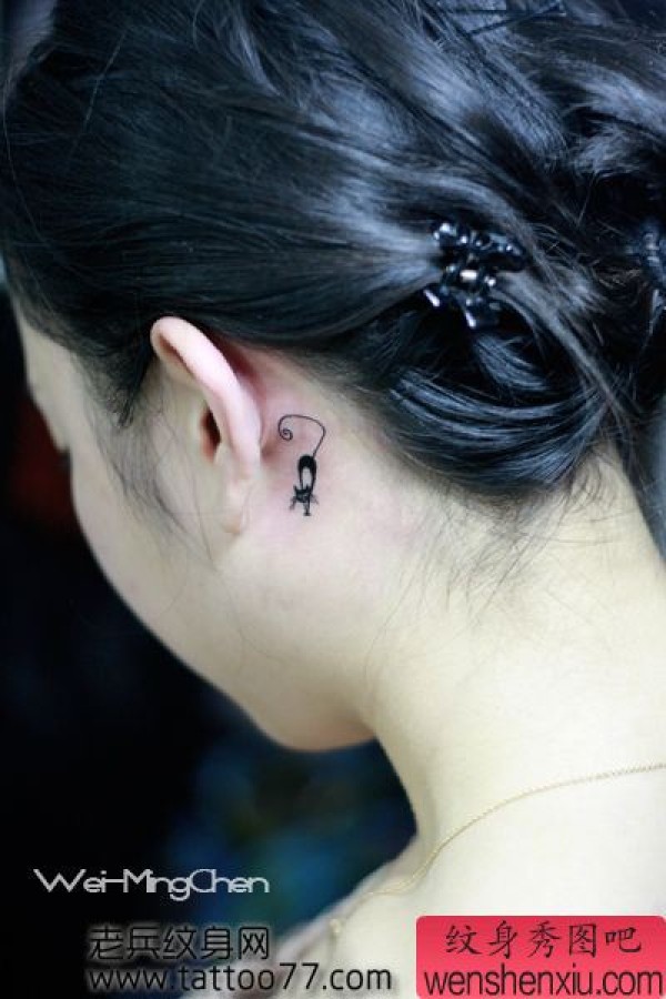 女孩子喜欢的耳部图腾猫咪纹身图案