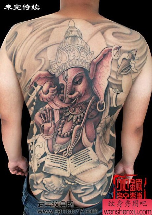 超酷的满背象神纹身图案