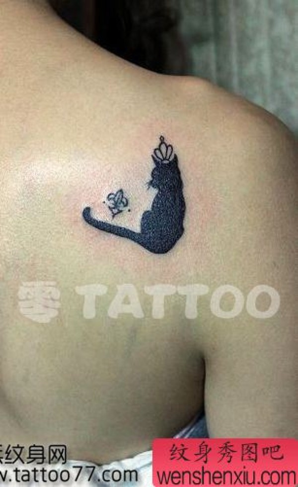 美女肩部时尚可爱的图腾猫咪纹身图案