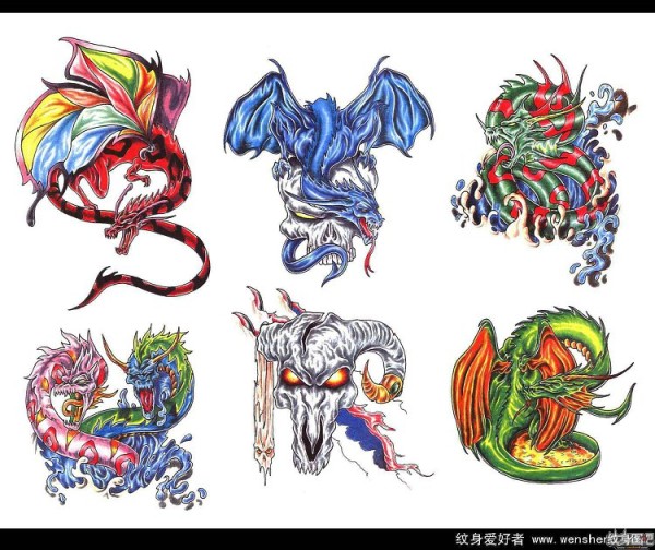 龙纹身手稿_一组老传统黑灰龙手稿纹身图案
