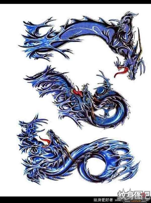 龙纹身手稿_一组老传统黑灰龙手稿纹身图案
