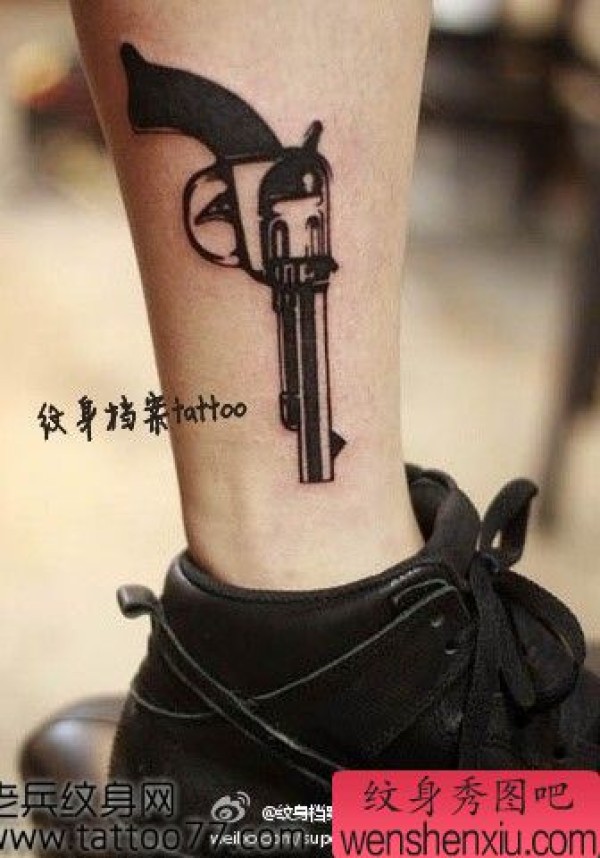 美女腿部图腾左轮手枪纹身图案