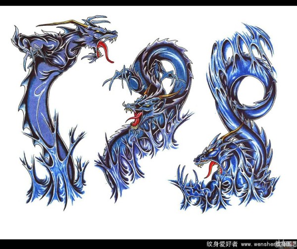 龙纹身手稿_一组老传统黑灰龙手稿纹身图案