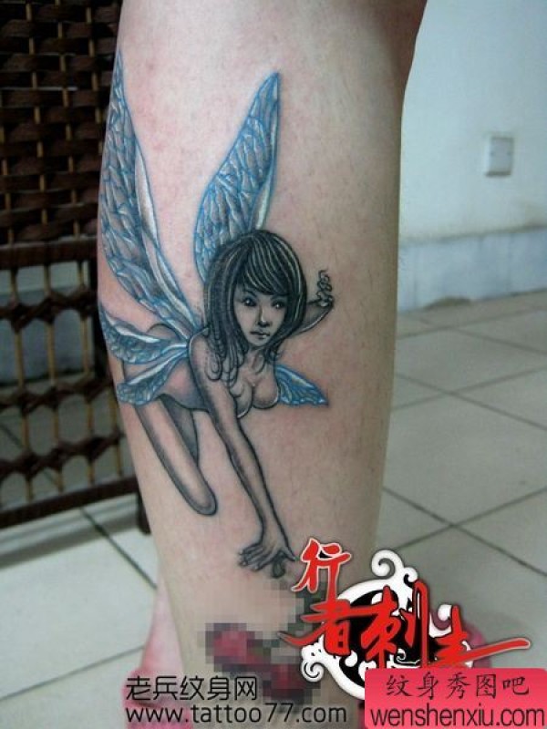 腿部好看漂亮的精灵翅膀纹身图案