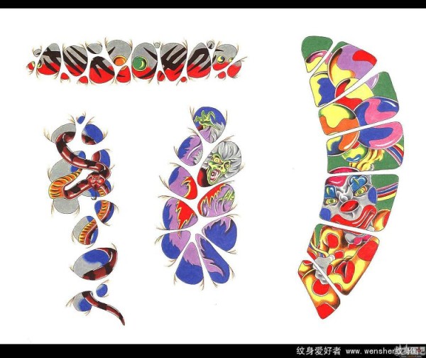 能面万媚纹身手稿_52张日式能剧面具纹身手稿图案素材欣赏