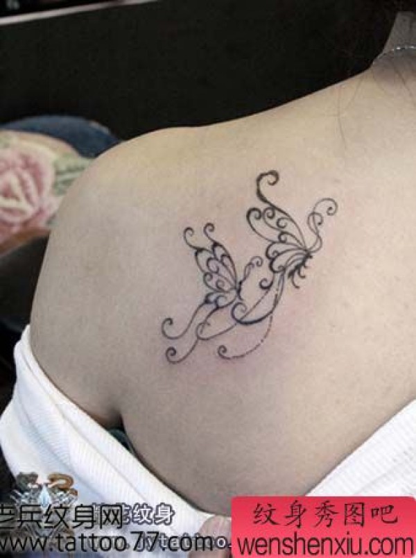 一张美女肩部好看的图腾蝴蝶纹身图案