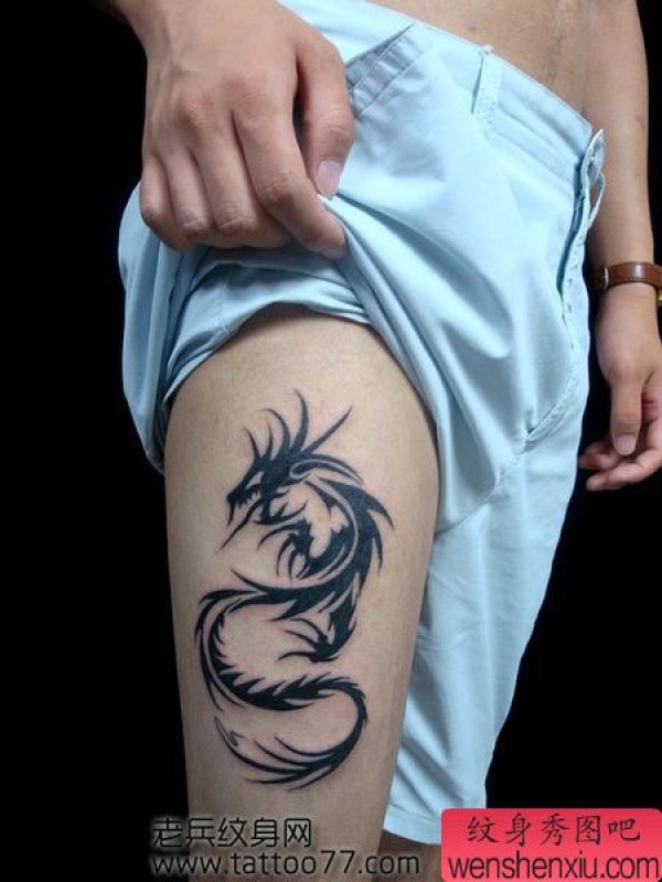 腿部好看又帅气的图腾龙纹身图案