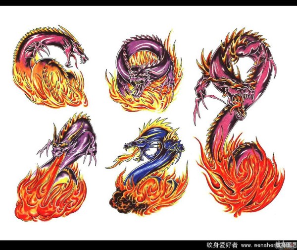 龙纹身手稿_一组老传统黑灰龙手稿纹身图案