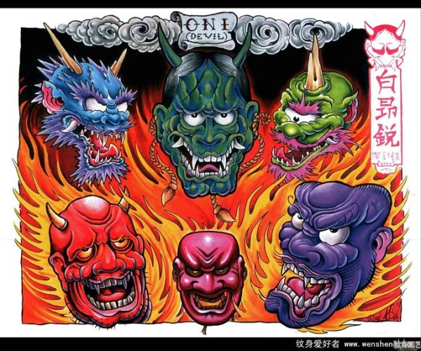 能面万媚纹身手稿_52张日式能剧面具纹身手稿图案素材欣赏