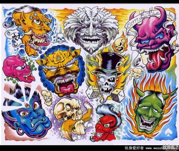 能面万媚纹身手稿_52张日式能剧面具纹身手稿图案素材欣赏